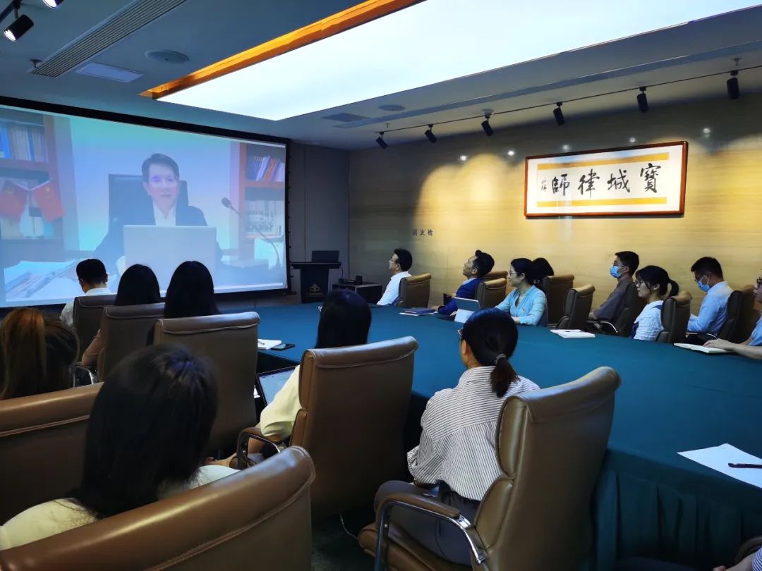 座谈会开始之前,党总支组织在家的党员在党员课室收看了深圳市司法局党委委员、市律师行业党委专职书记曹海雷主讲的《践行习近平法治思想 抓好律师行业党建工作》课件。