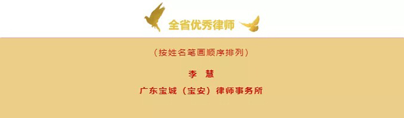 宝城所自1996年成立以来,经二十余年的砥砺前行,已成为一家大型、卓越综合性律师事务所,先后获得深圳市首届先进律师事务所、深圳市优秀律师事务所、全国优秀律师事务所、全国律师行业先进党组织等荣誉称号。近年来,宝城律师发挥新时代律师的使命与担当,率先先行示范,以专业的服务助力城市建设发展,积极参与“一带一路”、“粤港澳大湾区”、“前海自贸区”、棚户区改造、大型城市基础建设等重大活动法律服务;成立律师调解团队,进驻粤海街道等多个街道、(村)社区,服务和谐社会发展;为金融整治提供高质量的法律服务,令深圳市南山区网贷全行业良性清退顺利推进,成绩卓越;以法治思维化解社会各类重大突发事件,开展法律公益服务,维护人民群众合法权益。此次获评全省优秀律师事务所,是全省律师对宝城所的再度肯定,也是激励和鞭策。宝城所将继续保持高度的政治责任感和职业使命感,团结广大律师在法治先行示范城市建设新征程中展现新担当新作为,为“双区”建设和法治示范城市建设贡献自己的力量。李慧律师