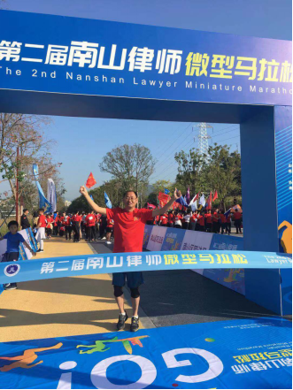 文永灿律师:喜欢大海,喜欢海滨城市,2018年12月我来到了深圳。最先去的海边是深圳湾,干净的空气,蓝天白云,人才公园人才济济,行人如织。深圳不仅有海,还有山。之前爬上塘朗山,远眺深圳湾、春笋。高山大海大湾区,I Love This City! 没曾想到今天参加南山区律师微型马拉松,还能遇到碧波荡漾的大沙河,河面不宽,两岸风景尽收眼底。今天南山区500名律师一起跑步,但是并没有封锁线路,一路可以看到男男女女跑步、一家老小散心,并且公园里还播放着舒缓柔美的音乐相,使我这个80KG重量级选手暂时忘却了酸胀乏力的双腿,得以继续向前。总而言之,这是一次享受。宝城律师们,明年再接再厉,众志成城。