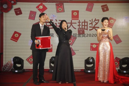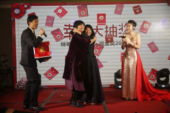 为了让现场员工都能满载而归,此次年会上共准备丰厚的奖金,随着一份份惊喜大礼送出,现场掌声雷鸣,笑声连连。
