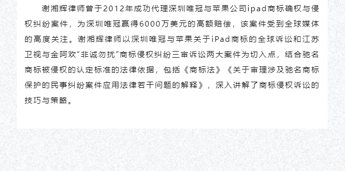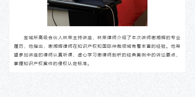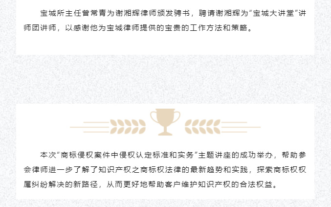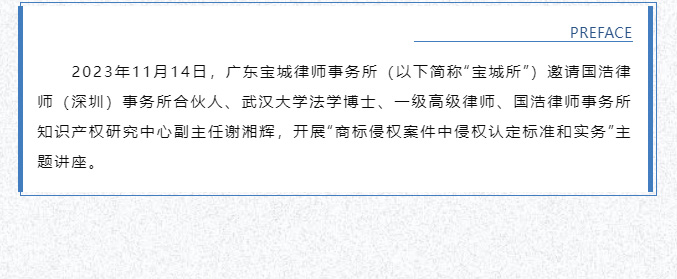 宝城动态 | 宝城所邀请谢湘辉律师开展“商标侵权案件中侵权认定标准和实务”主题讲座