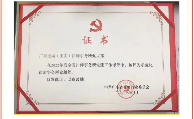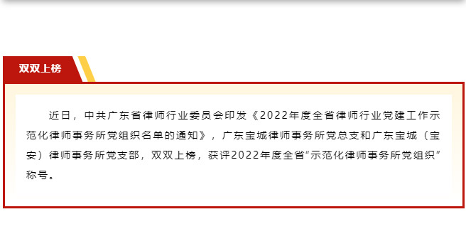 宝城喜讯|宝城所党总支和宝城(宝安)所党支部荣获全省“示范化律师事务所党组织”称号