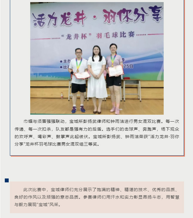 宝城动态|奋发乒博 羽你分享——宝城所在龙井杯乒乓球赛和羽毛球赛上斩获佳绩