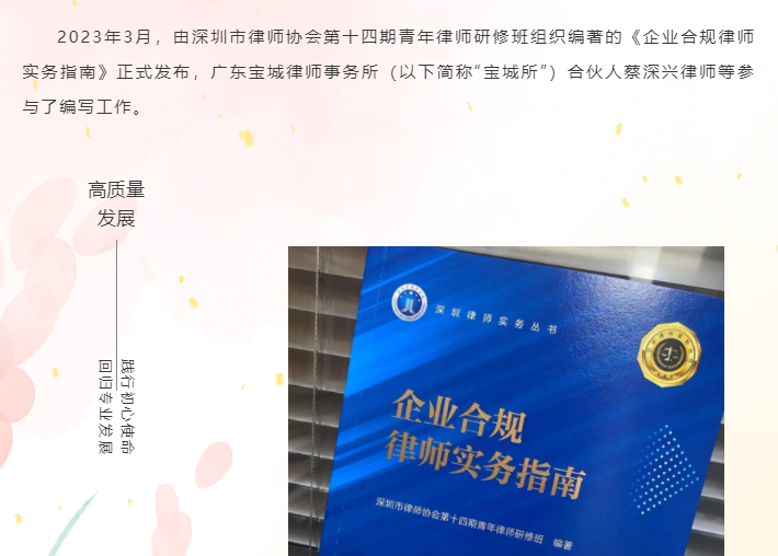 宝城喜讯|宝城所蔡深兴律师参与编著的《企业合规律师实务指南》正式出版