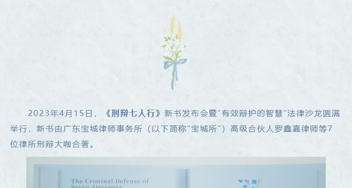 登山凿石方逢玉——宝城所罗鑫嘉律师合著出版优秀案例集《刑辩七人行》