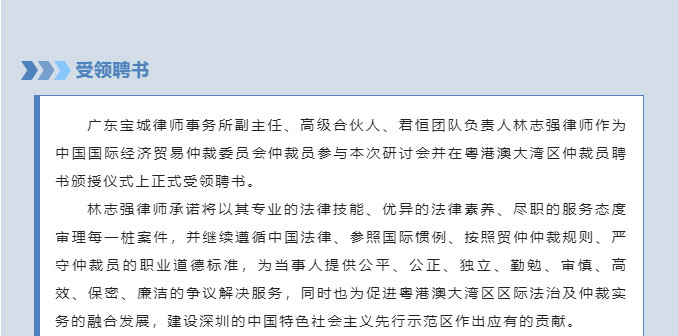 宝城动态| 宝城所林志强律师参加“仲裁助力粤港澳大湾区高质量发展研讨会”并正式受领贸仲仲裁员聘书