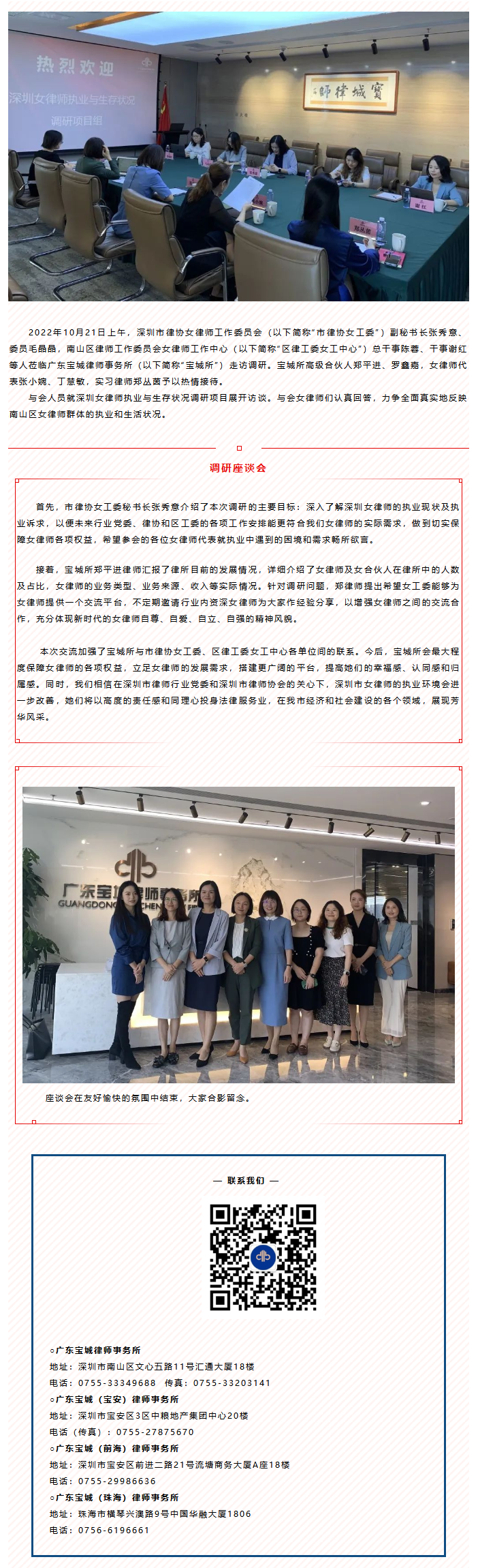 宝城动态 深圳市律协女工委一行莅临宝城所走访调研