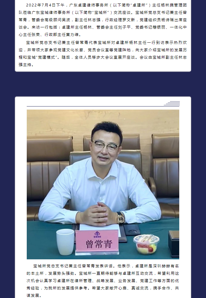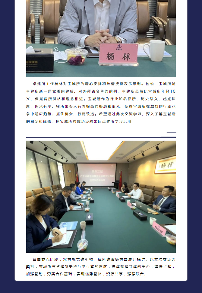 宝城动态|卓建律师所杨林主任携管理团队莅临宝城律师所交流座谈