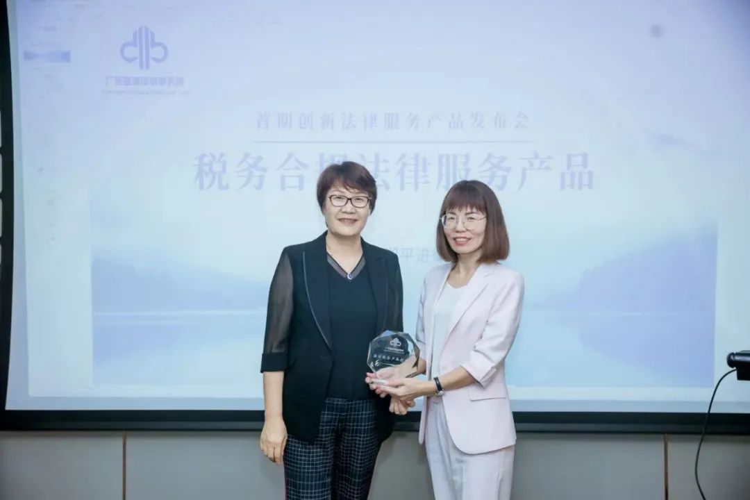 郑律师精彩的分享结束后,李慧主任代表宝城所创新委向深税团队颁发“法律服务产品创新奖”,高度肯定深税团队创新进取的执业精神和优质高效的法律服务。