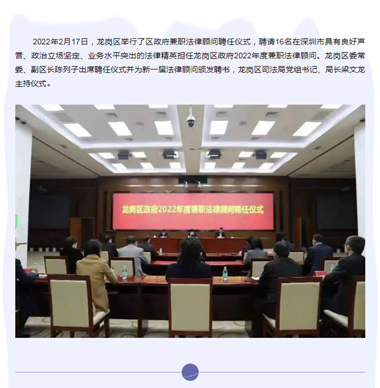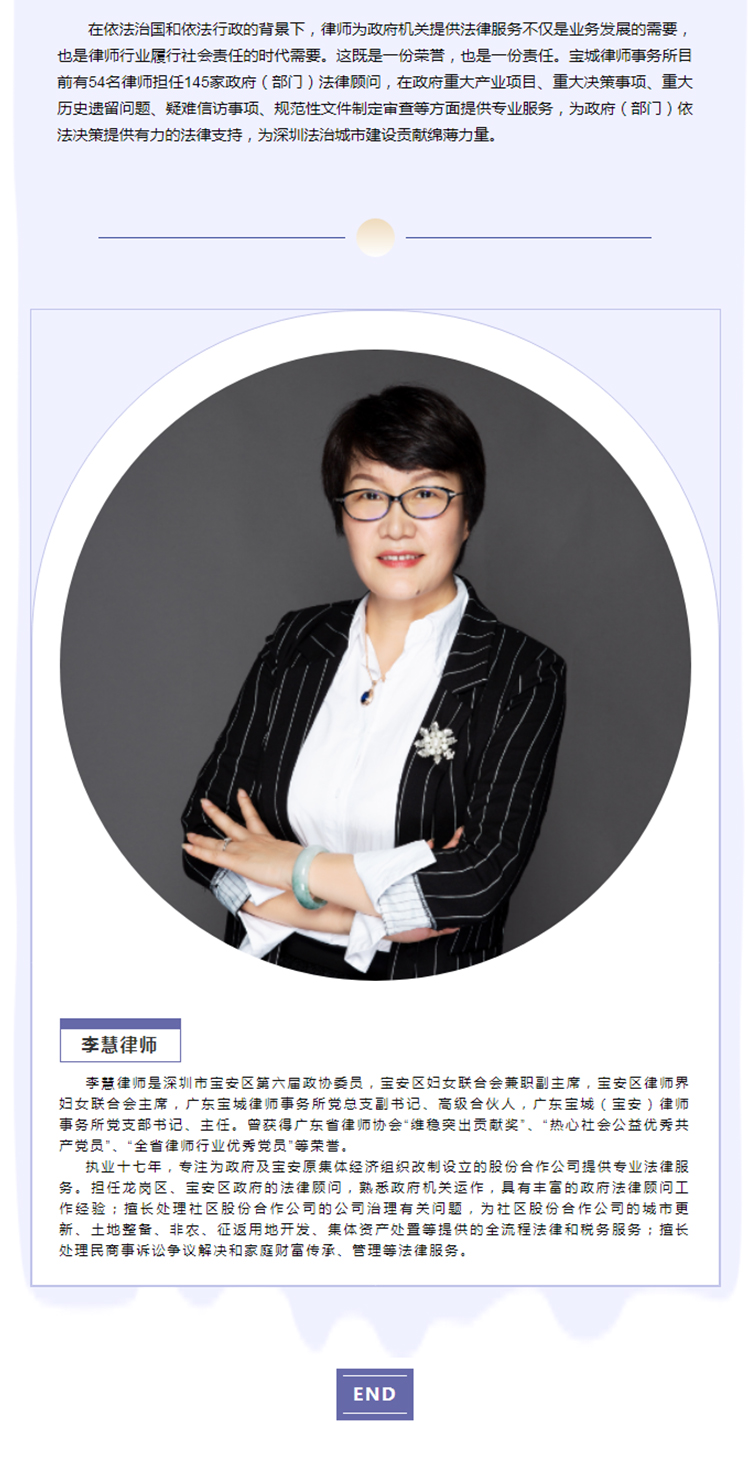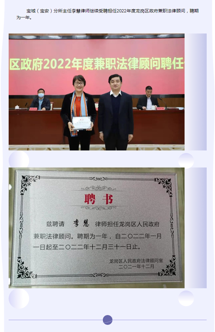宝城动态 | 喜讯!宝城(宝安)分所主任李慧律师受聘担任龙岗区政府2022年度兼职法律顾问