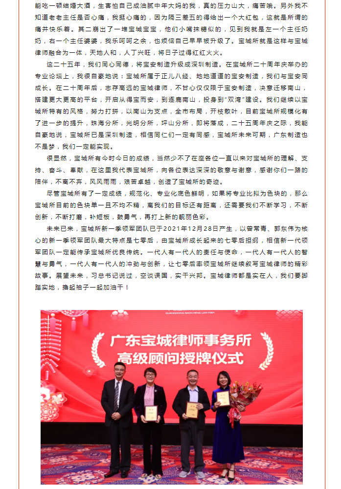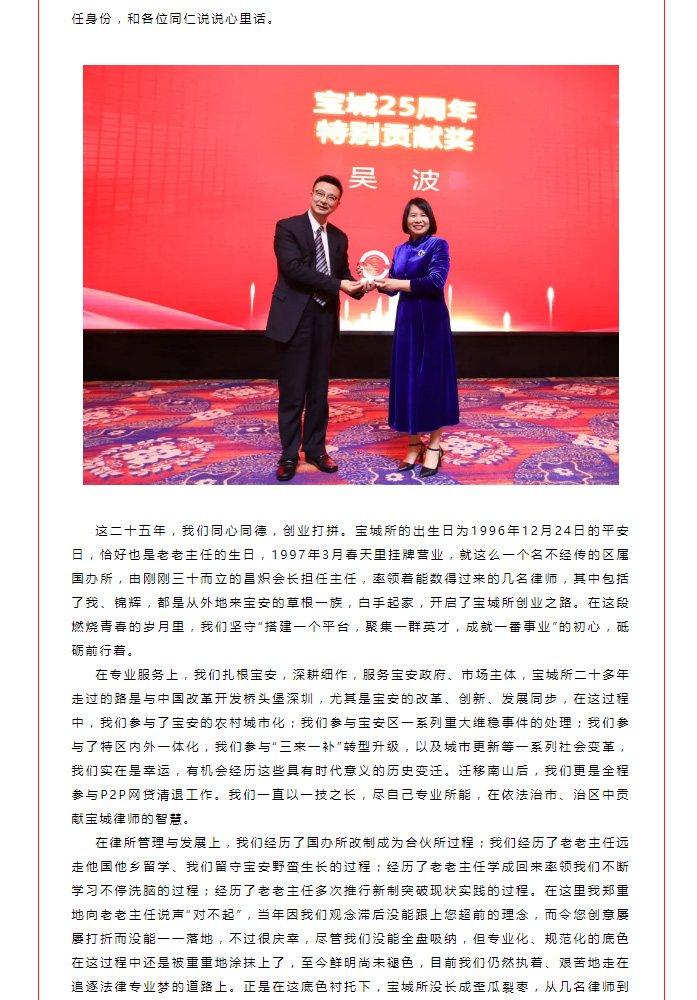宝城动态 | 新元年新征程,宝城律师继往开来——宝城所二十五年周年高级顾问吴波律师讲话全文