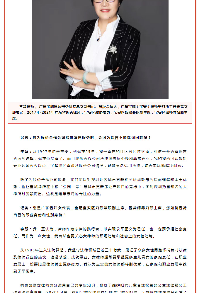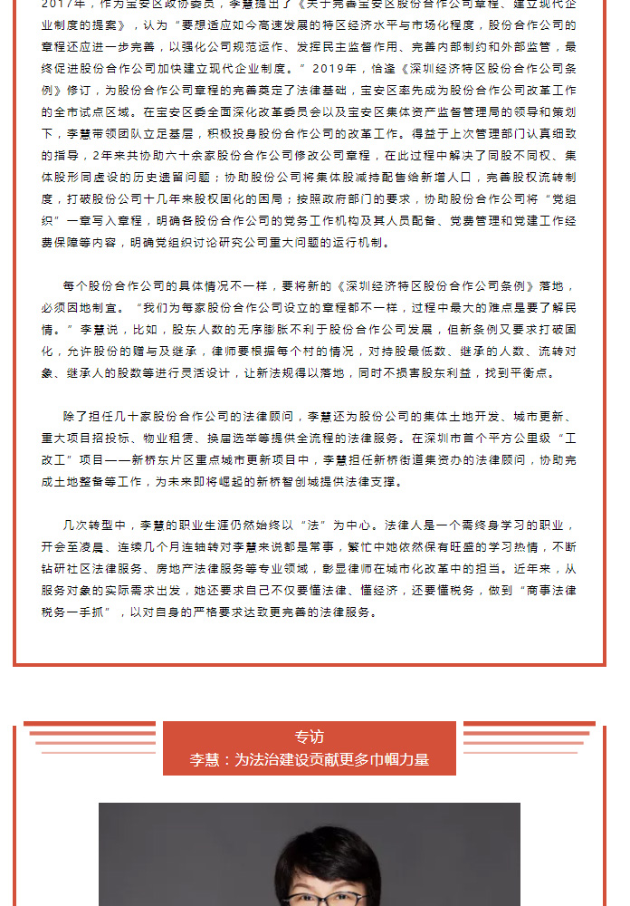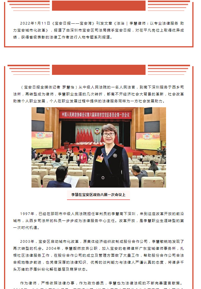 宝城动态 | (转载)宝安日报——宝安湾刊文:李慧律师 以专业法律服务 助力宝安城市化改革