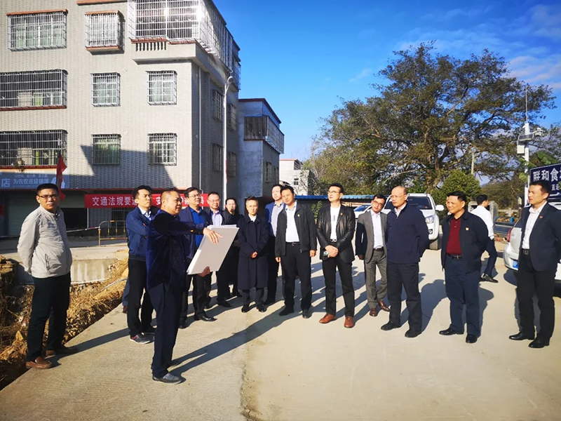 大家参观考察连平县莞中村法治长廊规划情况。