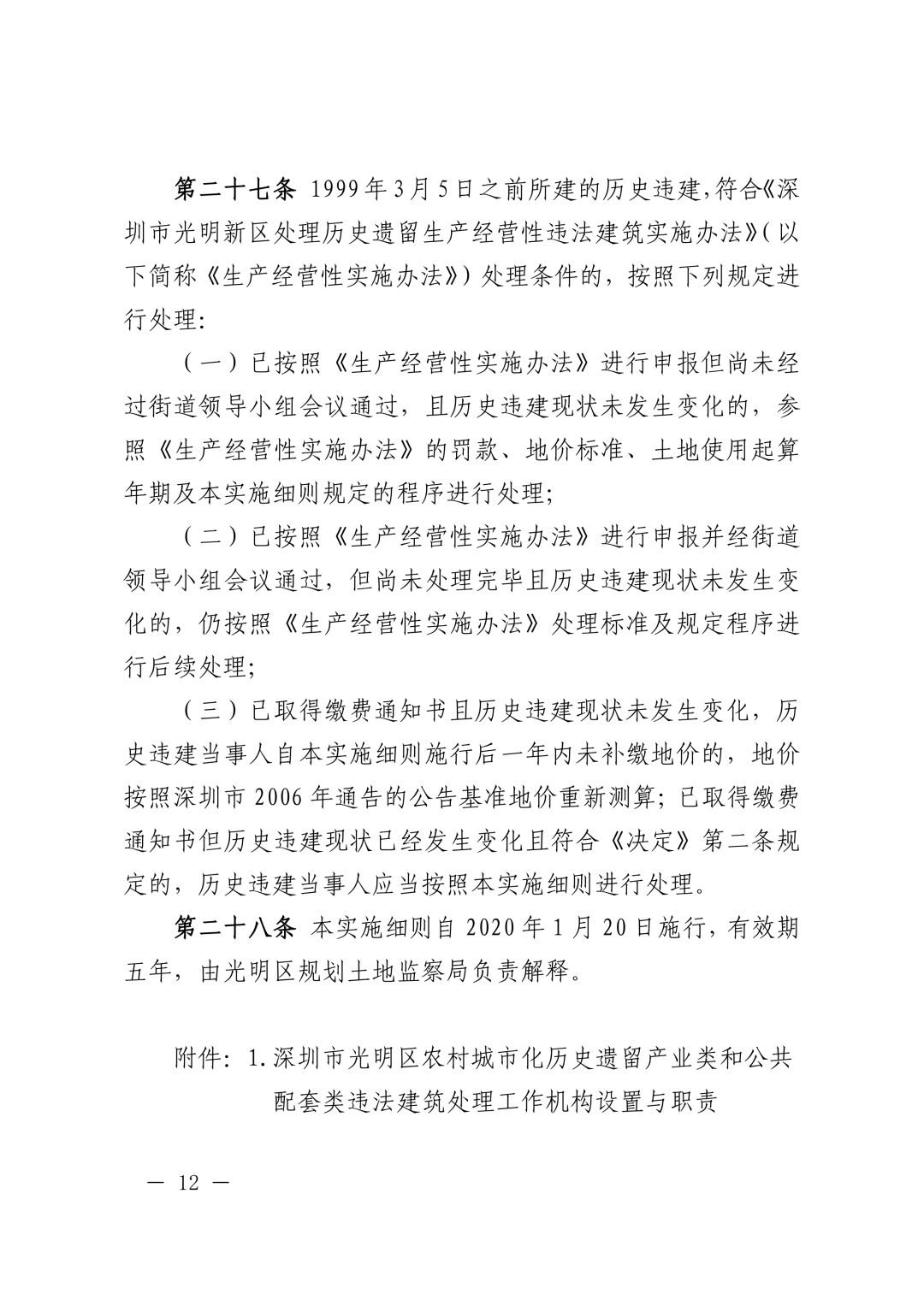 1月10日,光明区政府以“深光府规〔2020〕1号”文件正式印发《深圳市光明区农村城市化历史遗留产业类和公共配套类违法建筑处理实施细则》(以下称《实施细则》),自2020年1月20日开始实施。