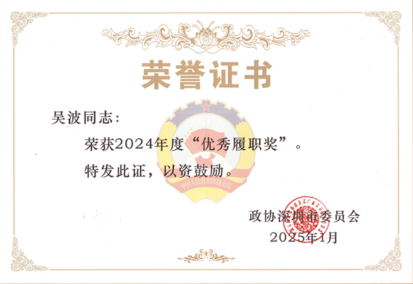 宝城喜讯 | 宝城所吴波律师荣获深圳市政协2024年度“优秀履职奖”!