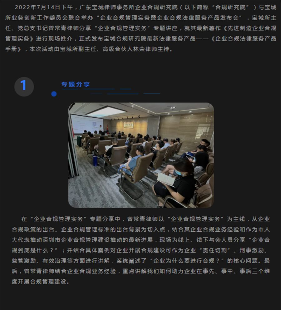 宝城律师所召开企业合规管理实务讲座暨企业合规法律服务产品发布会