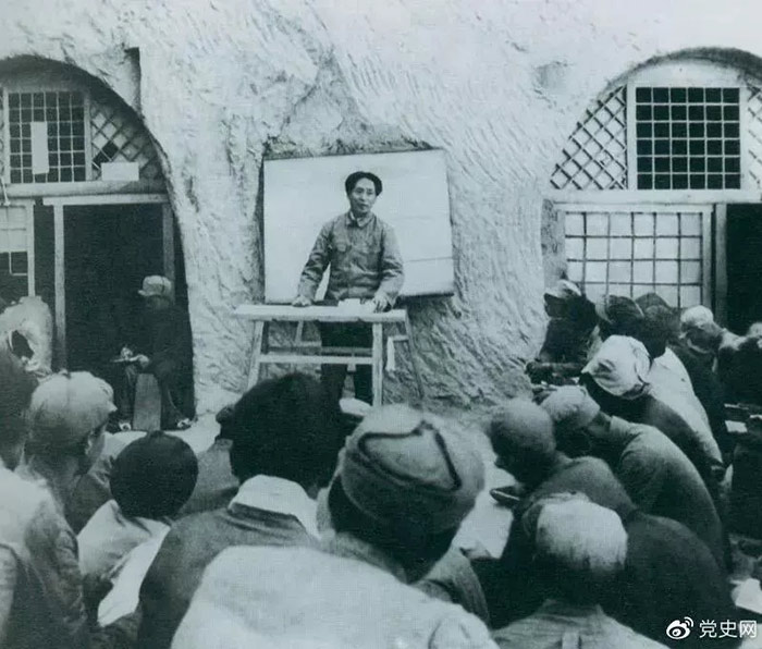 1938年4月,毛泽东在鲁迅艺术学院讲演。