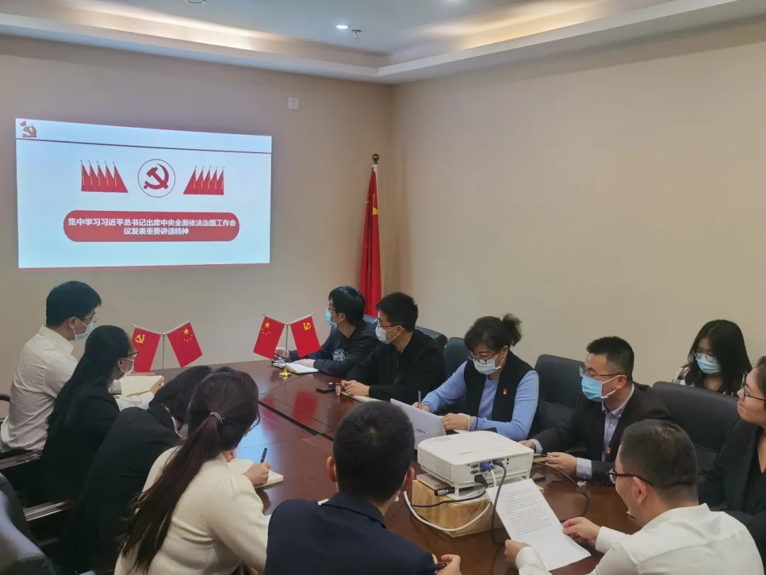会上,由各党支部书记组织各支部党员认真学习领会习近平总书记出席中央全面依法治国工作会议发表重要讲话精神,要增强“四个意识”、坚定“四个自信”、做到“两个维护”,把会议精神转化为做好全面依法治国各项工作的强大动力,转化为推进法治建设的思路举措,转化为全面建设社会主义法治国家的生动实践。我们党员律师要把依法治国的理念贯彻到实际工作中,坚守初心,不忘使命,勇于担当作为,为社会的长治久安贡献自己的绵薄之力。