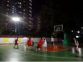 随着夜色降临,一声哨声响起,双方球员迅速进入状态,决赛开始。两队都是高手云集、势均力敌,发球、运球、传球、断球、拼抢……球员们个个精神抖数,展开了激烈的争夺,气氛立刻紧张起来。比赛异常的夺人眼球,各队员配合默契,在赛场上展现出精湛的球技。队员们热情高涨,比分胶着。场外双方的拉拉队受场内影响,呐喊不断,鼓掌声、加油声响遍全场。