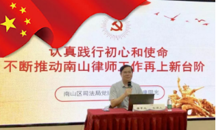 康甲光同志为培训班学员讲第一堂课《认真践行初心和使命,不断推动南山律师工作再上新台阶》。他紧紧围绕习近平总书记“不忘初心,牢记使命”的主题,结合南山区实际,将“守初心、担使命、找差距、抓落实”,四个方面展开讲述南山区律师行业现状分析与发展思路。