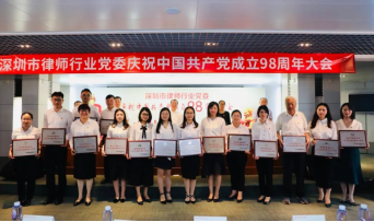 2019年6月28日上午10时,深圳律师行业党委庆祝中国共产党成立98周年大会暨“七·一”表彰大会在庄严的国歌声中拉开帷幕。深圳市司法局党委书记、局长蒋溪林,市委组织部组织二处处长王伟燕,市司法局党委委员、副局长、市律师行业党委书记任继光,市司法局党委委员、政治部主任郑雷,市司法局律公处处长熊松青,市律师行业党委副书记、市律师协会会长林昌炽同志,行业党委副书记张善华、党委副书记兼纪委书记郑剑民,行业党委、纪委委员,协会理事会、监事会部分党员、直属基层党组织书记及受表彰人员共200余人出席大会。任继光同志主持大会。