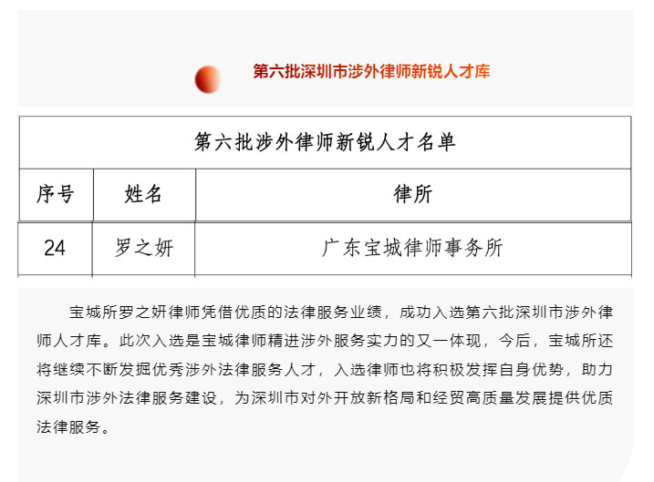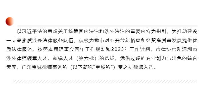 宝城喜讯|宝城律师入选第六批深圳市涉外律师新锐人才库名单