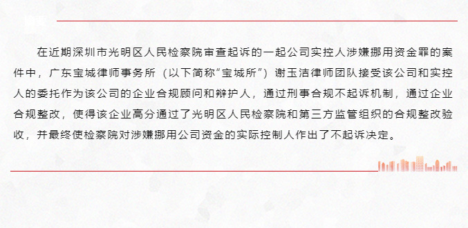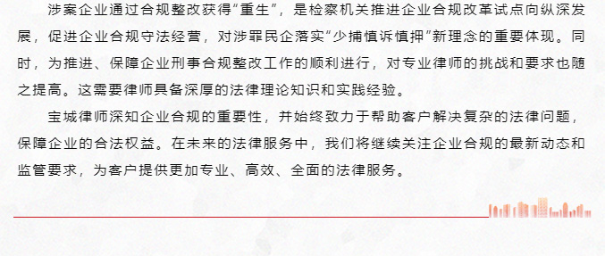 宝城业绩|宝城律师通过企业合规不起诉机制帮助企业实控人获不起诉决定