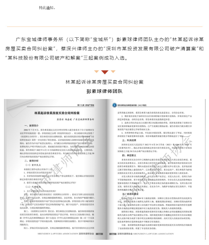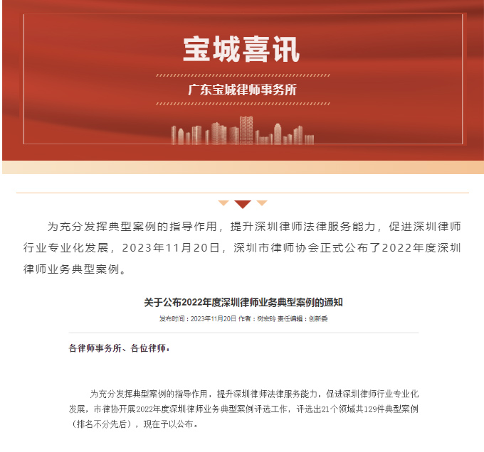 宝城喜讯|宝城所承办的三起案例入选深圳市律师协会“2022年度深圳律师业务典型案例”