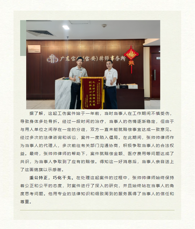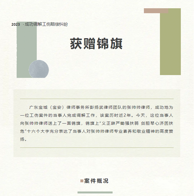 宝城动态|秉公持正 巧化干戈——宝城所张帅帅律师成功调解工伤赔偿纠纷获赠锦旗