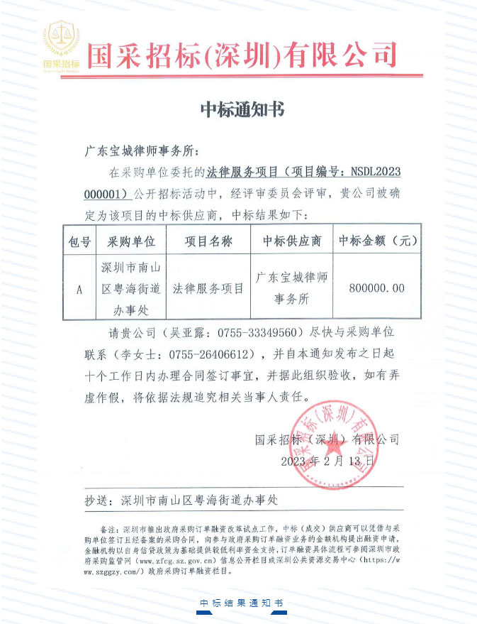 宝城业绩|宝城所成功中标2023年粤海街道16个社区法律顾问项目