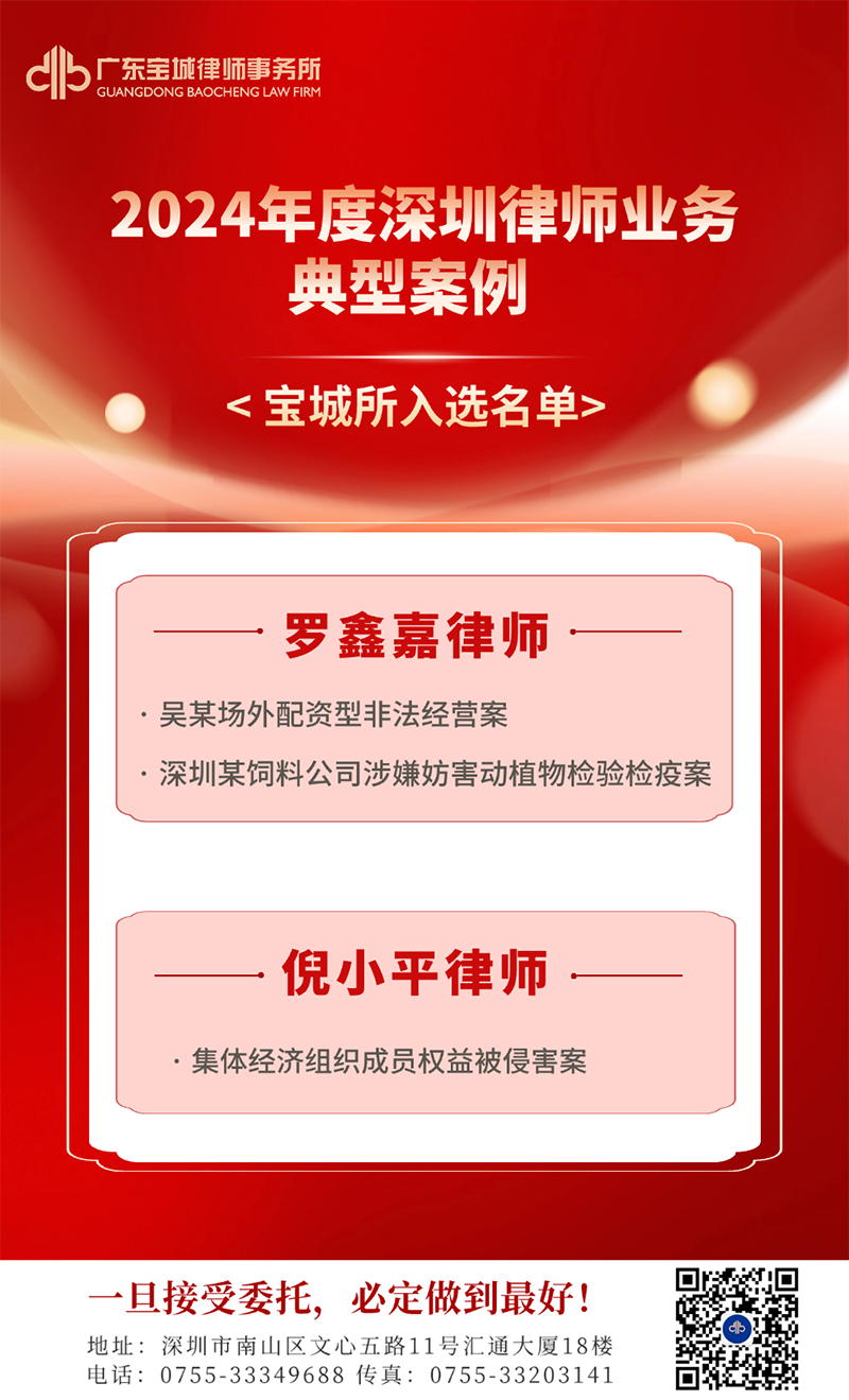 广东宝城律师事务所凭借精湛的专业实力和卓越的实务成果,由高级合伙人倪小平律师、高级合伙人罗鑫嘉律师经办的三件案例脱颖而出,荣获入选。此次入选,是深圳市律协对宝城律师专业水准与案件质量的又一次权威认可。