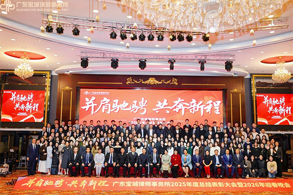2026年1月23日,广东宝城律师事务所“并肩驰骋·共奔新程”2025年度总结表彰大会暨2026年迎春晚会在深圳市宝安区恒丰海悦国际酒店隆重举行。