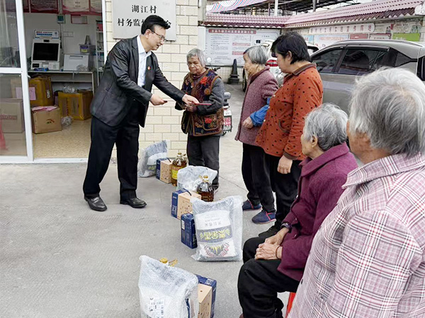 在湖江村“两委”干部的陪同下,宝城所党总支一行为湖江村的5名老党员送上牛奶、大米、食用油等慰问品,并一一送上慰问金,用一份心意向湖江村的老同志们致敬,也让老同志们感受到党组织的关怀与温暖。